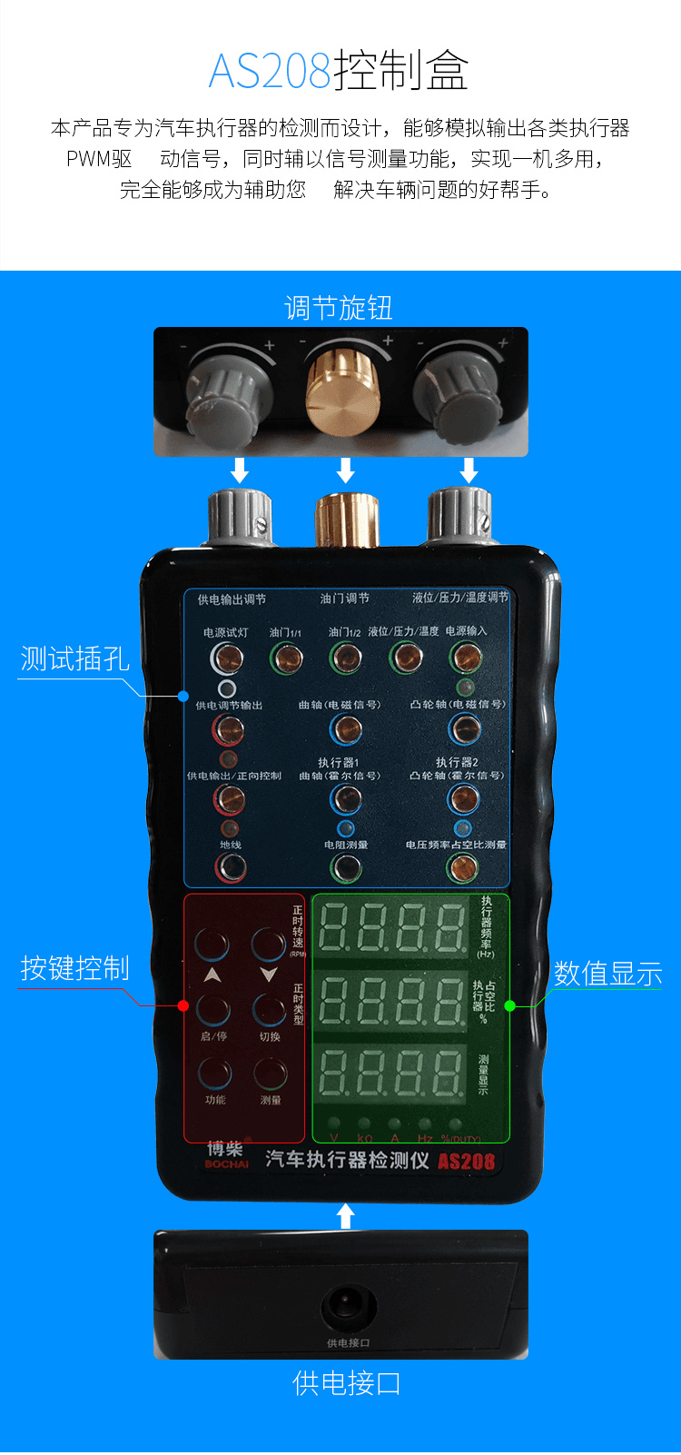 博柴AS208信號(hào)模擬發(fā)生器可以說真正做到一機(jī)在手修車無憂,更多產(chǎn)品信息請(qǐng)關(guān)注測(cè)神電控之家公眾號(hào)DKZJ360或致電4009965230咨詢。